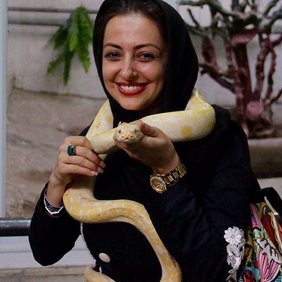 بازی نفیسه روشن با یک مار بوآ +عکس