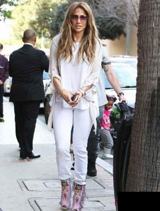 جنیفر لوپز ادعایی مبنی بر خوش پوشی ندارد اما  نوع لباس پوشیدن او به گونه ای است که میلیونها هوادار او در سراسر دنیا  جنیفر لوپز را تحسین می کنند.او روز گذشته با کفش های عجیبی به خیابان آمد که از او یک سوژه خبری ساخت.جنیفر لوپز لباس سراپا سفیدش را با یک جفت کفش پاشنه دار بنفش روشن ست کرده بود. این کفش های پاشنه بلند اصلا راحت به نظر نمیرسید و حتی تصور میشود  که او به سختی با آنها راه میرود. کفش های عجیب او نقش هایی به رنگ زرد و قرمز و سبز داشت. ” جنیفر لوپز ” این روزها بسیار فعال و پر کار است، او علاوه بر حضور در برنامه ” امریکن آیدل ” چندین موزیک ویدئو و فیلم را نیز در حال ساخت و انتشار دارد.