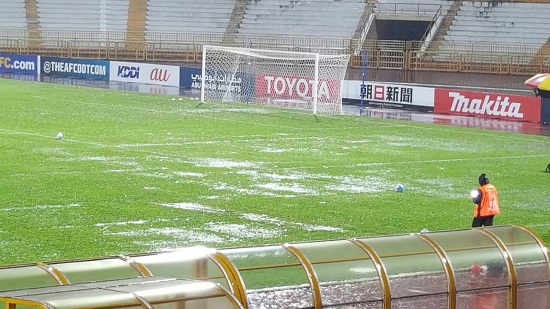 وضعیت زمین چمن ورزشگاه توانکو عبدالرحمان اصلاً مساعد نیست و بارش باران سیل‌آسا باعث شده تا زمین چمن خیس و لغزنده شده باشد. این در حالی است که کادر فنی تیم ملی سوریه برای بازدید از وضعیت زمین وارد زمین شده و چمن را مورد بررسی قرار دادند. ظاهراً مسئولان برگزاری مسابقه قصد دارند زمین چمنی را که شبیه به استخر شده، آماده و مهیای بازی کنند.