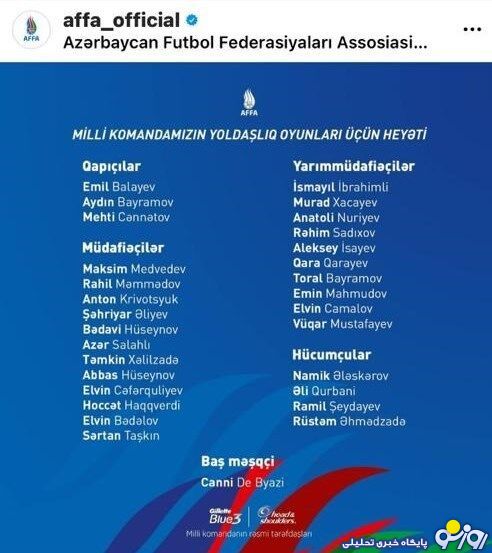 روزنو :مدافع ایرانی تیم فوتبال سومقاییت آذربایجان به تیم ملی این کشور دعوت شد.