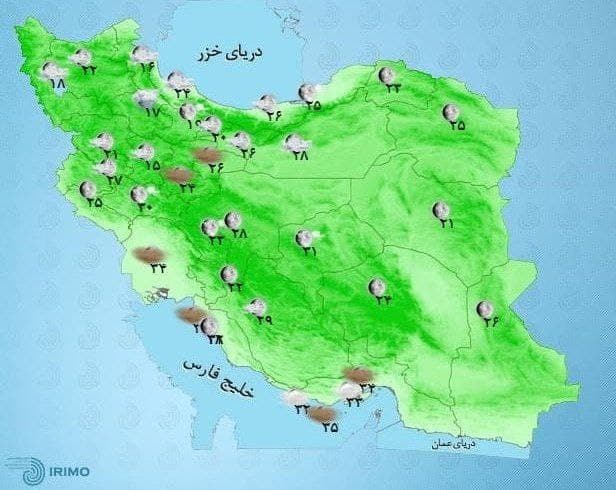مدیرکل پیش‌بینی و هشدار سریع سازمان هواشناسی درباره وضعیت جوی تهران طی دو روز آینده اظهارکرد: آسمان تهران فردا (۱۳ مرداد) قسمتی ابری و در اواسط روز نیمه ابری همراه با وزش باد با حداقل دمای ۲۵ و حداکثر دمای ۳۵ سانتیگراد و طی روز پنجشنبه (۱۴ مرداد) صاف تا قسمتی ابری و در بعدازظهر همراه با وزش باد با حداقل دمای ۲۵ و حداکثر دمای ۳۵ درجه سانتیگراد پیش‌بینی می‌شود.