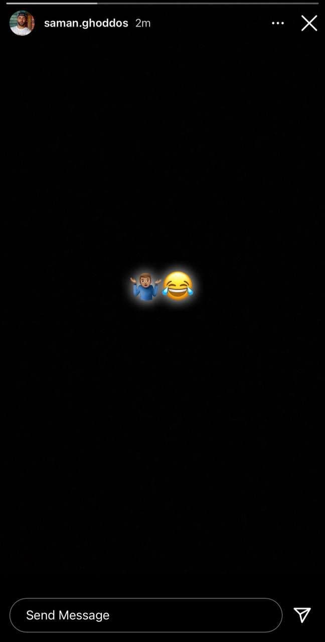 سامان قدوس در دیدار هفته قبل تیم ملی ایران مقابل امارات به‌طور کامل نیمکت‌نشین بود که در دیدار برابر کره جنوبی نیز همین اتفاق برای این لژیونر افتاد؛ موضوعی که واکنش این بازیکن را با انتشار یک استوری به همراه داشته و یکی از دو ایموجی منتشر شده توسط این بازیکن «بی‌اطلاعی» او را عنوان کرده است.