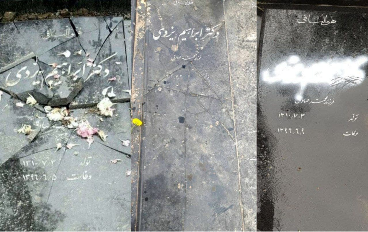 روزنو :در دوازدهم آبان ماه، نهضت آزادی ایران در بیانیه‌ای اعلام کرد: «طی هفته‌های اخیر، سنگ مزار زنده‌یاد دکتر ابراهیم یزدی توسط افراد ناشناس تخریب شده است.» پس از بیانیه نهضت آزادی و واکنش افکار عمومی به این رخداد، مدیریت بهشت زهرا اقدام به تعویض سنگ قبر نمود. اما ساعاتی بعد محمد توسلی دبیر کل نهضت آزادی با انتشار توییتی اعلام کرد «سنگ مزار جدید دکتر ابراهیم یزدی دوباره مخدوش شده است.» اما ابراهیم یزدی تنها شخصیتی نبوده که سنگ مزارش تخریب شده بلکه افراد دیگری مانند احمد شاملو، ایرج افشار، سهراب سپهری، عباس کیارستمی، محمدعلی سپانلو و محمدعلی فروغی نیز بخشی از چهر‌ها بودند که مزارشان از تخریب در امان نبوده است.