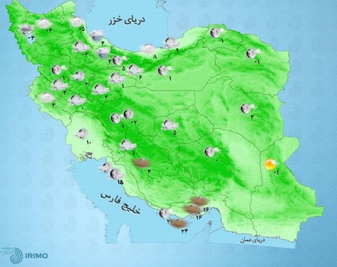 وضعیت آب و هوا، امروز ۴ دی ۱۴۰۰ / کاهش ۵ تا ۷ درجه‌ای دما در مازندران و گلستان