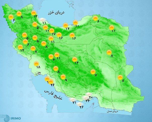 وضعیت آب و هوا، امروز ۱۴ فروردین ۱۴۰۱ / وزش باد ملایم در پایتخت / آغاز رگبار پراکنده از روز پنجشنبه