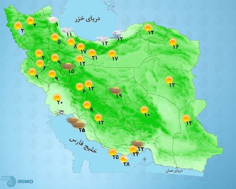 روز نو :سازمان هواشناسی از بارش پراکنده و رعدوبرق در بیشتر مناطق کشور و خیزش گردوخاک در شرق و جنوب‌شرق خبر داد. امروز در استان‌های ایلام، لرستان، استان مرکزی، خوزستان، قزوین، البرز، سواحل شمالی و بخش­‌هایی از البرز رگبار پراکنده، گاهی رعد و برق خواهیم داشت.