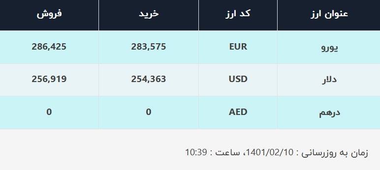قیمت دلار در صرافی‌های بانکی، امروز ۱۰ اردیبهشت ۱۴۰۱