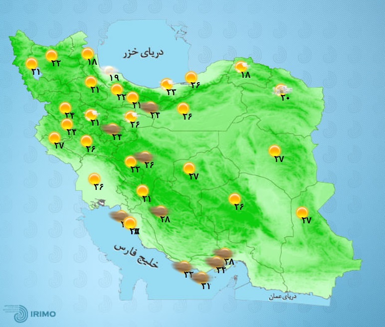 وضعیت آب و هوا، امروز ۷ خرداد ۱۴۰۱
