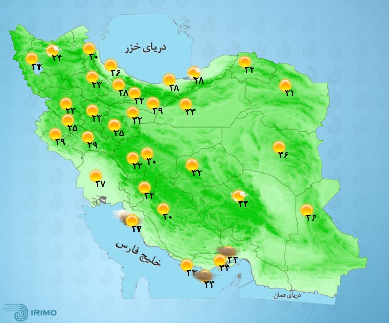 وضعیت آب و هوا، امروز ۲۵ خرداد ۱۴۰۱ / استقرار گرما در بیشتر نقاط کشور / رگبار و رعد و برق در ۹ استان