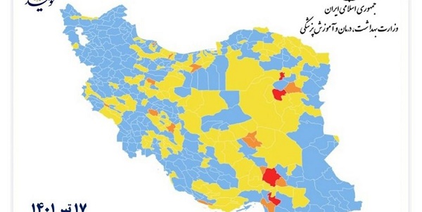 تعداد شهر‌های قرمز کرونایی امروز ۱۸ تیر ۱۴۰۱