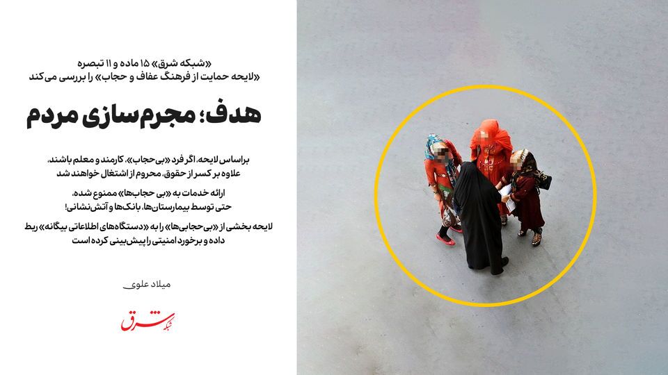 لایحه «عفاف و حجاب» عملا نگاه امنیتی به این مقوله را بسط داده است. این لایحه در ماده 5 و تبصره آن، عملا بخشی از «بی حجابی‌ها» را «سازمان یافته» و وابسته به «دستگاه‌های امنیتی و اطلاعاتی بیگانگان» عنوان کرده و مرتکبان را «اگر شامل جرائم دیگر»، نظیر ارتباط با دول متخاصم نباشند، به 2 سال ممنوع الخروجی، 2 تا 5 سال حبس و مجازات‌های تکمیلی ماده 23 قانون مجازات محکوم کرده است. این لایحه همچنین خواسته یا ناخواسته، اقرار کرده که آنچه امروز تحت عنوان توقیف خودروهای افراد «بی حجاب»، راه ندادن آنان به مترو و اقداماتی از این دست انجام شده، هیچ مستند قانونی‌ای نداشته است که اگر داشت، نویسندگان این لایحه مجبور به ارجاع به آن بودند.