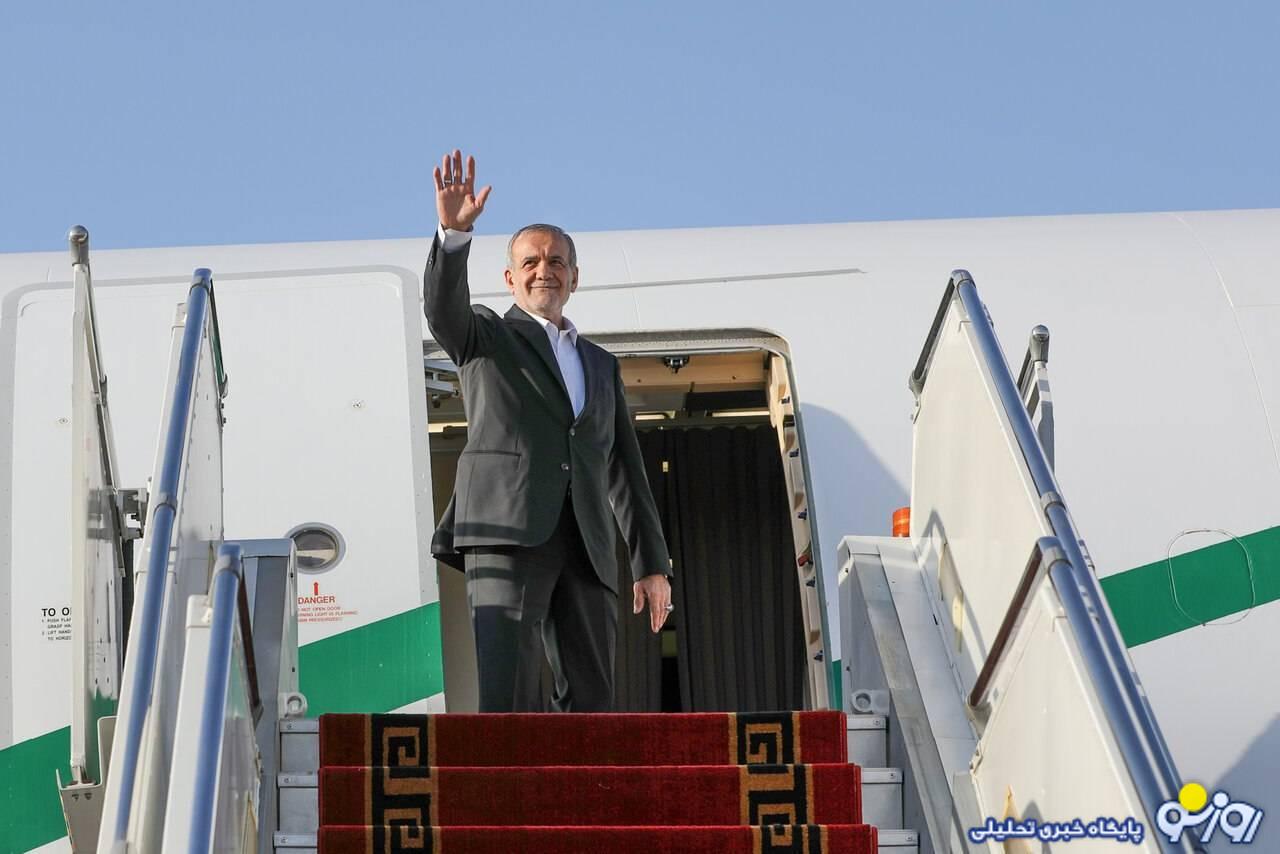 سیدعباس عراقچی، وزیر امور خارجه، عبدالناصر همتی، وزیر اقتصاد، فرزانه صادق، وزیر راه، جعفر قائم‌پناه، معاون اجرایی و محسن حاجی‌میرزایی، رئیس‌دفتر رئیس‌جمهور و مهدی سنایی، معاون سیاسی دفتر و محمدرضا فرزین، رئیس کل بانک مرکزی از جمله همراهان پزشکیان در این سفر بودند.
