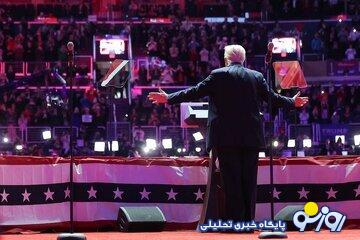 تصویری از رقص ترامپ در گردهمایی شب تحلیف/وعده‌های سخت رئیس‌جمهور آمریکا به جهان؛ تا زمانی که خورشید فردا غروب کند...
