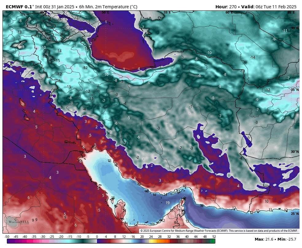 بر اساس اعلام اداره کل هواشناسی استان تهران، توچال با کمینه دمای ۱۵- درجه سانتیگراد سردترین ایستگاه استان تهران در ۲۴ ساعت گذشته گزارش شده است.