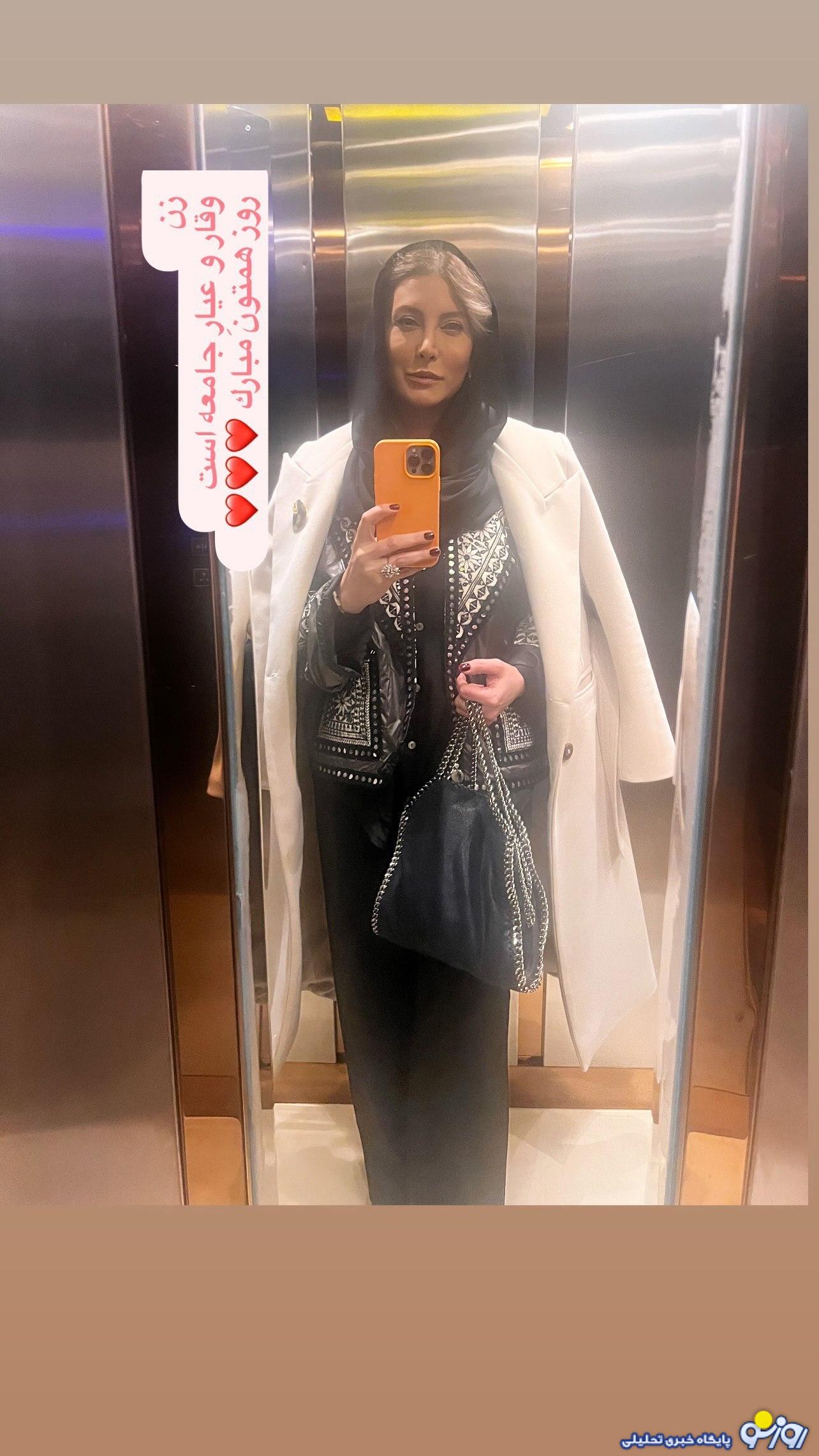 عکس/ سلفی آسانسوری فریبا نادری با لباس خامه دوزی در روز جهانی زن