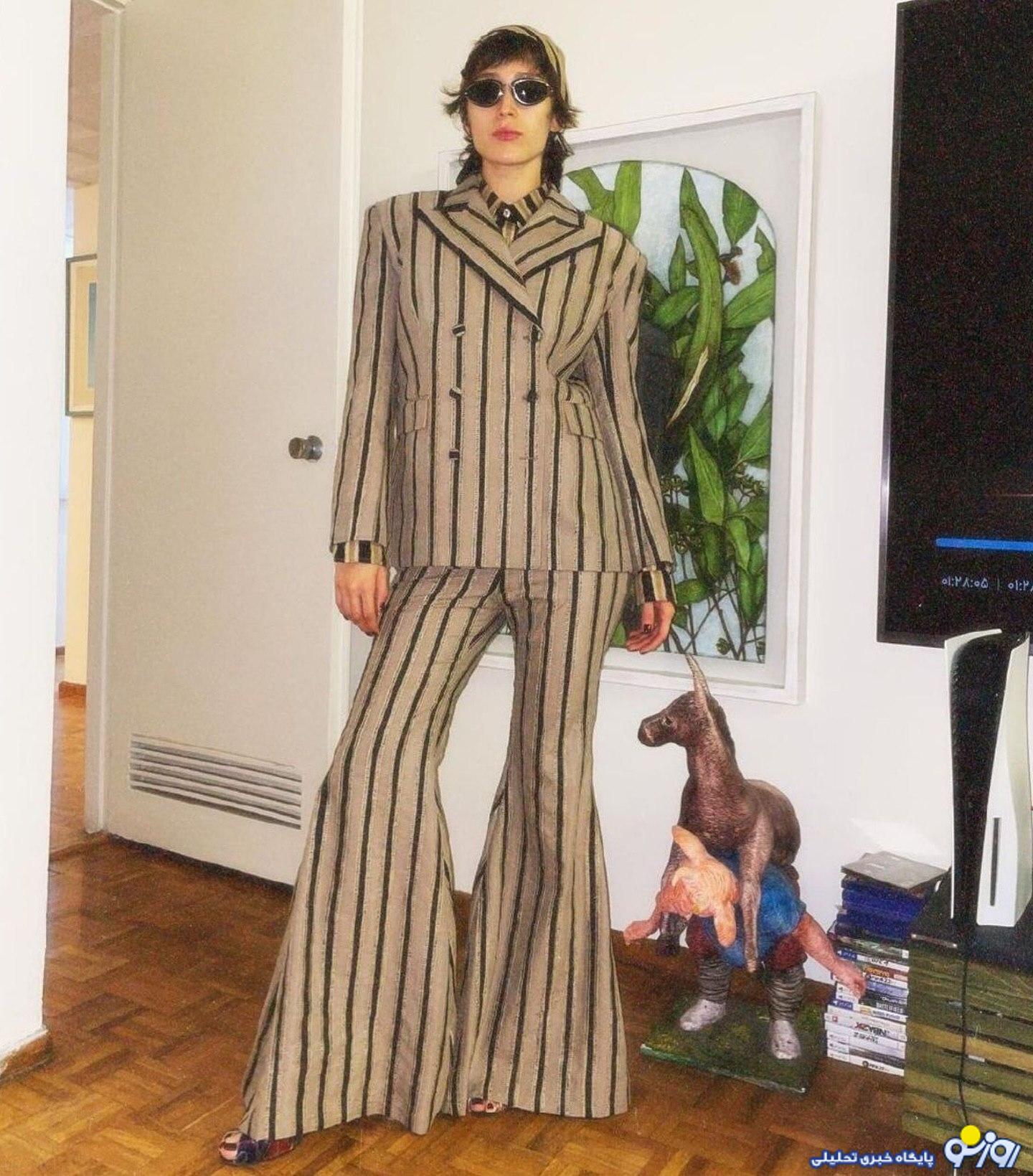 عکس/ استایل فرشته حسینی با شلوار دهه ۴۰ و عینک خرمگسی در یک مراسم