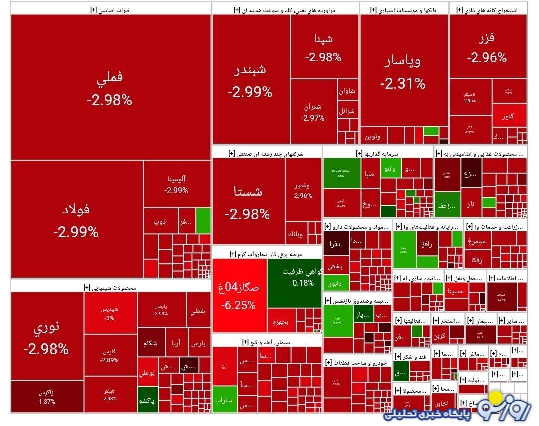 نماد‌های «فملی»، «فارس» و «فولاد» بیشترین تأثیر منفی را بر شاخص کل گذاشتند.