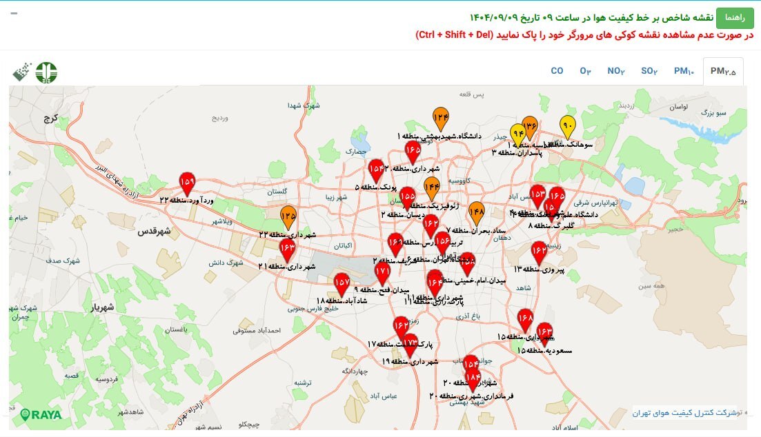 روزنو :هوای تهران نفس‌گیر و خطرناک شد! شاخص آلودگی امروز باز هم فراتر از حد مجاز رفت و تنفس در پایتخت را برای همه گروه‌های سنی به ویژه سالمندان و کودکان دشوار کرد.
